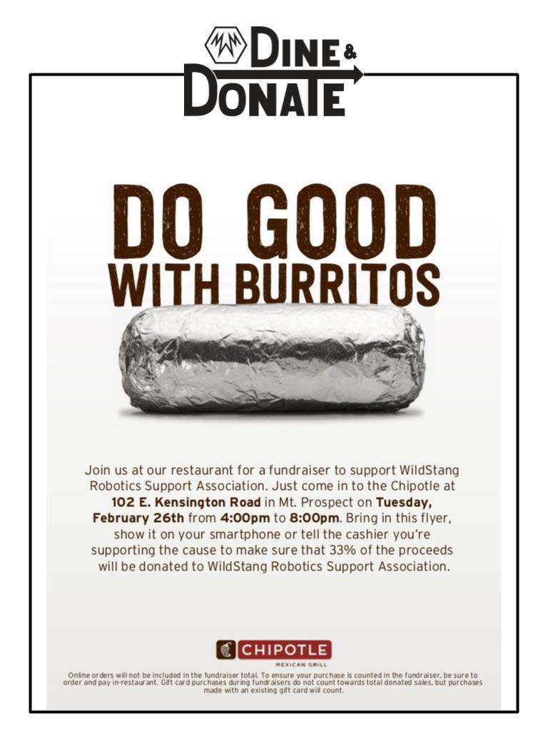 So mark your calendars for dinner at Chipotle and remember to tell your family, friends and colleagues!
