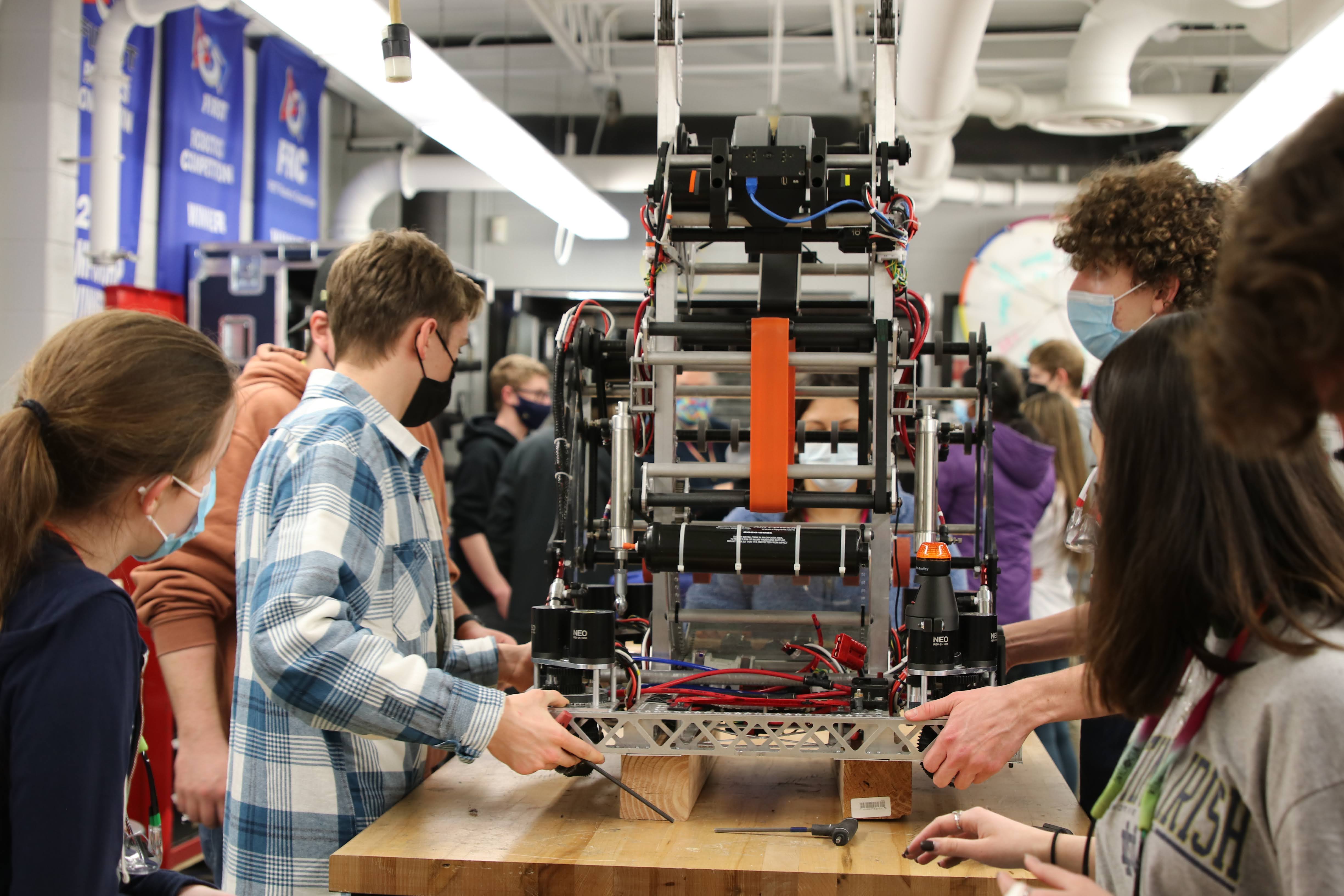 The WildStang Robotics Program is excited to announce that team 111 will be attending their first competition for the 2022 Rapid react season. This first competition will feature Team 111, WildStang’s robot, but members from 111 and 112, Plus One teams will be in attendance for scouting and to experience the event.