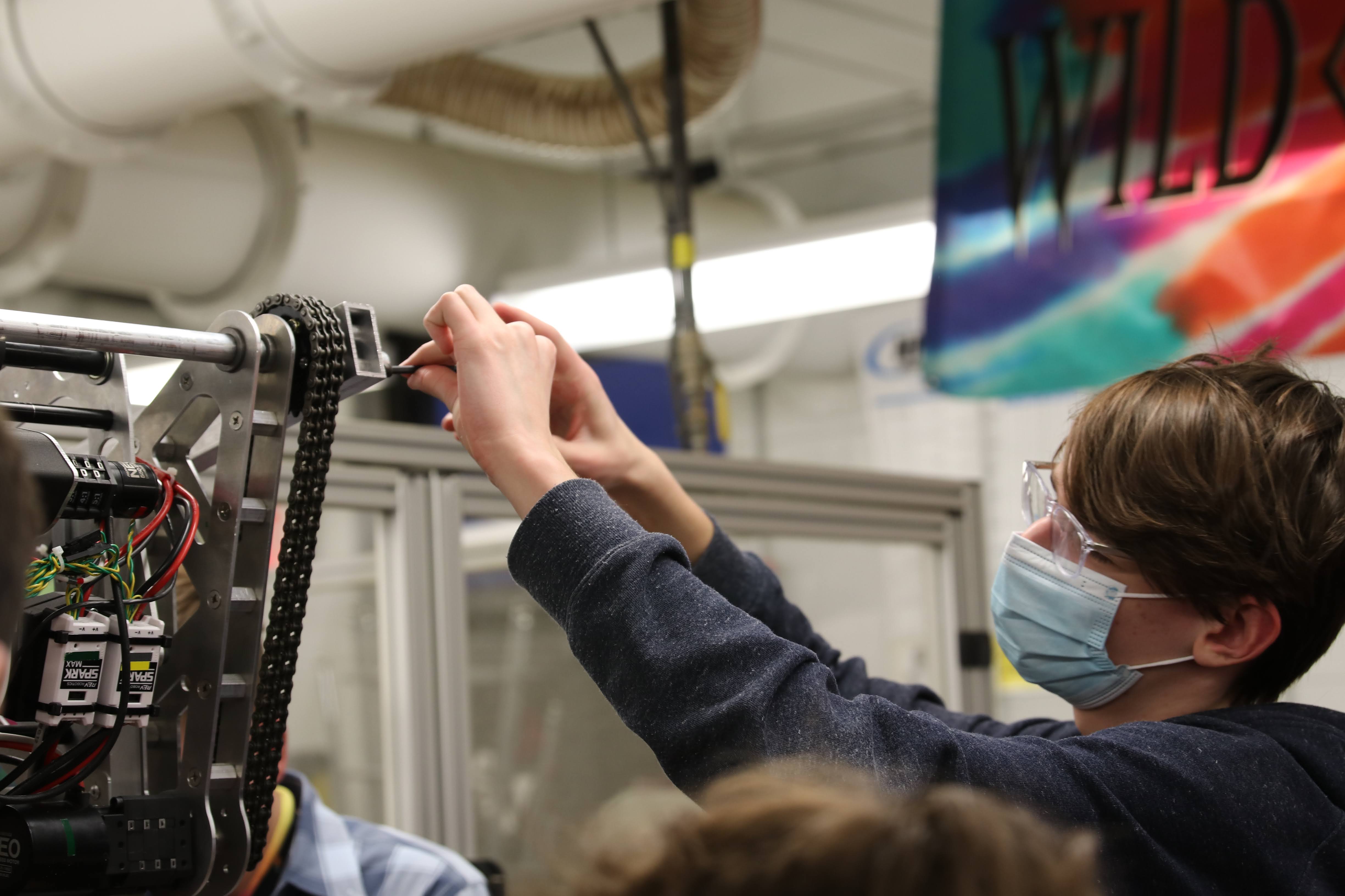 For 111, the robot is running well, and finishing touches were put on the robot. For example, the mechanical subteam fixed a few robot issues, assisted software in limelight work, and had some innovative changes. The most innovative change this week was adding orange flags to the climber so it is clear to the driver and operator where the robot is. This change was made due to watching other robots during the first weeks of competition and realizing that they had trouble centering themselves on the hanger which led to robots falling off. 111’s mechanical sub-teams goals for week ten include adding swerve module protection and preparing for CIR on Wednesday!