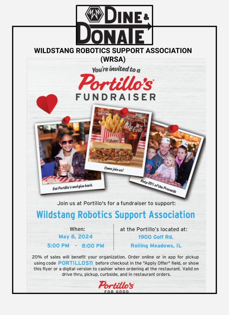 So mark your calendars for dinner at Portillo’s and remember to tell your family, friends and colleagues!