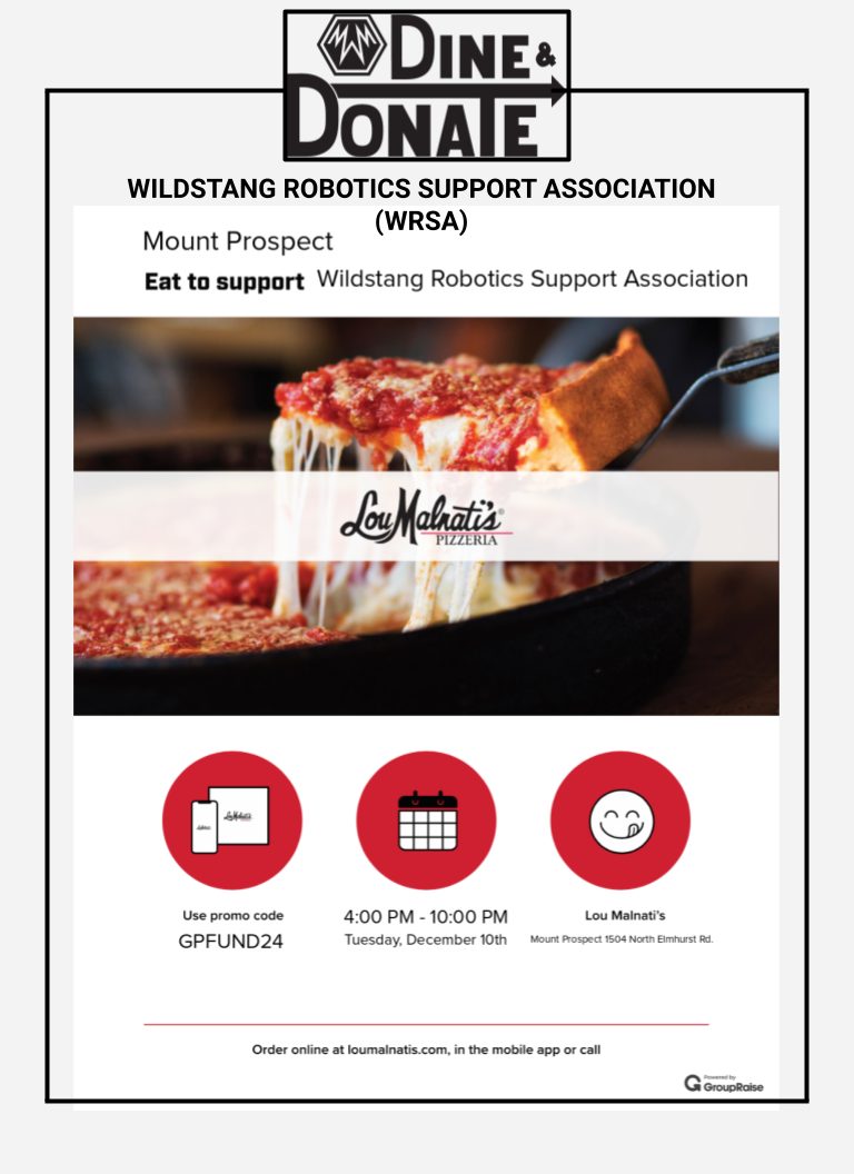 Lou Malnati’s will donate 20% of all pick up and delivery orders to the WildStang Robotics Program, when ordered online, through the app or when you call in the order.